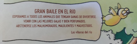 pero siendo el baile a la orilla del río, los peces estaban asomados a la arena,
